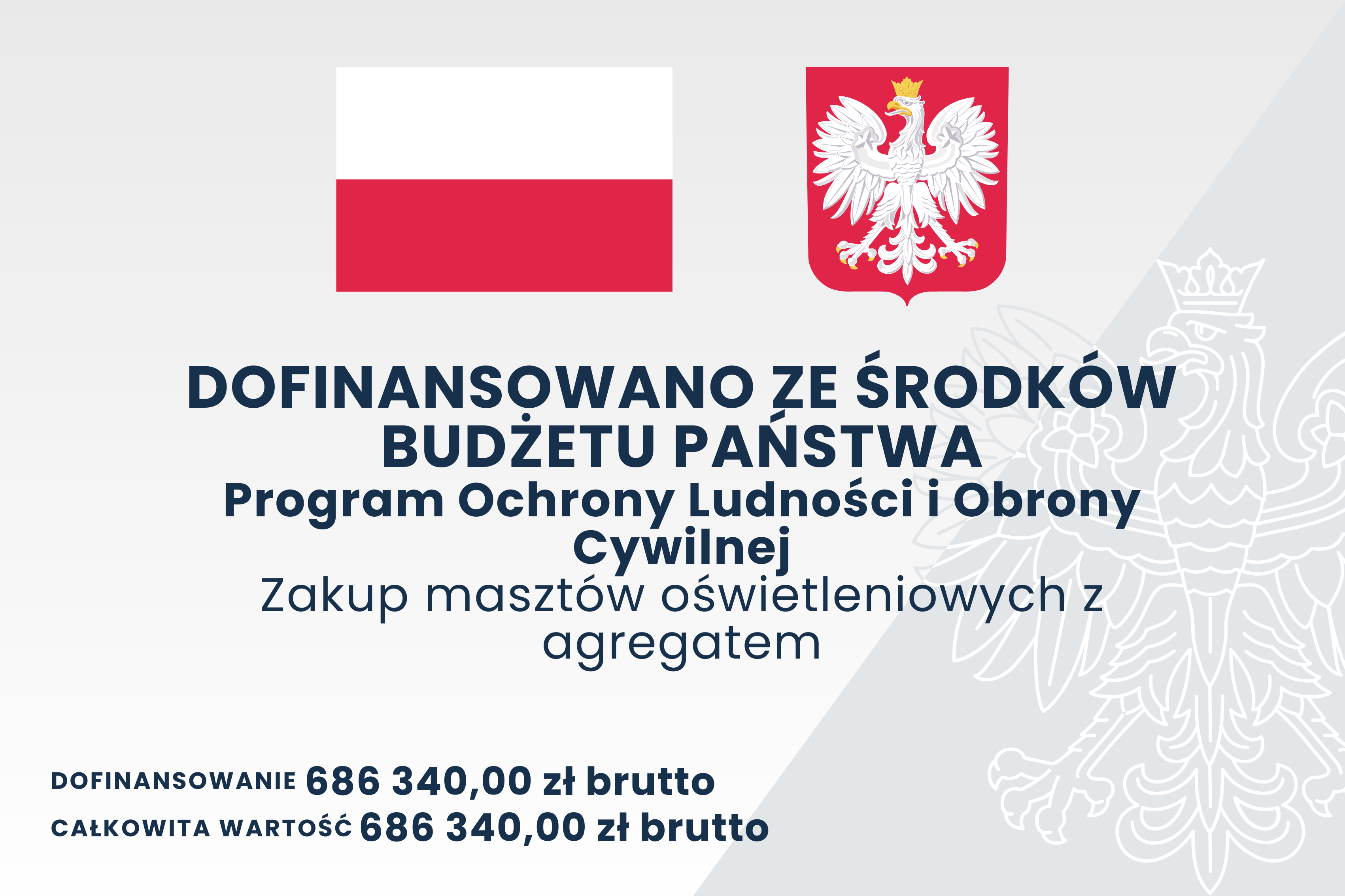 Całkowita wartość zadania wyniosła 686 340,00 zł brutto i została w całości sfinansowana ze środków budżetu państwa w ramach Programu Ochrony Ludności i Obrony Cywilnej.